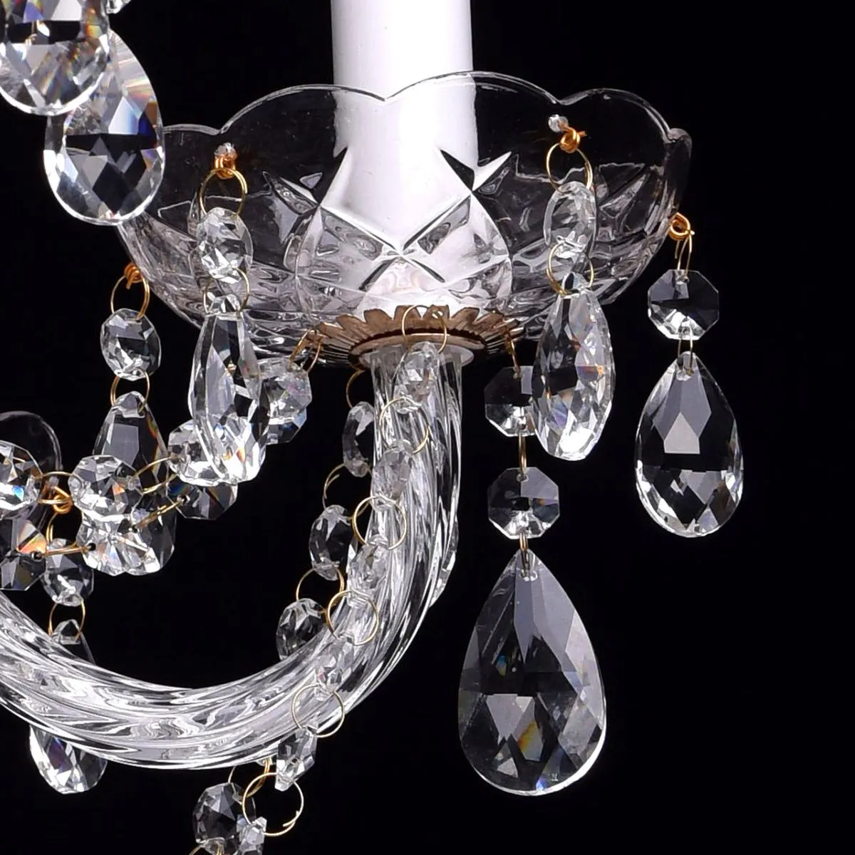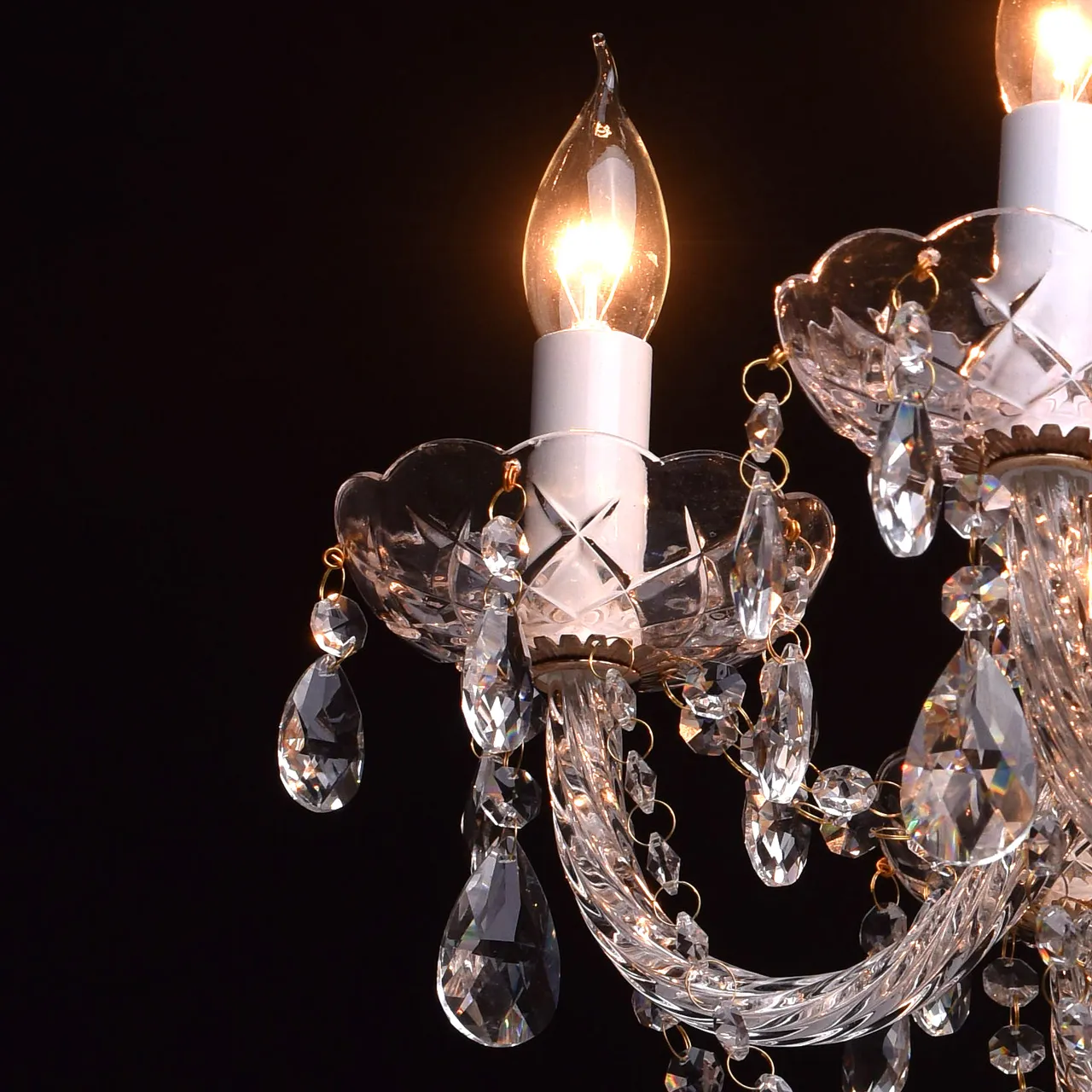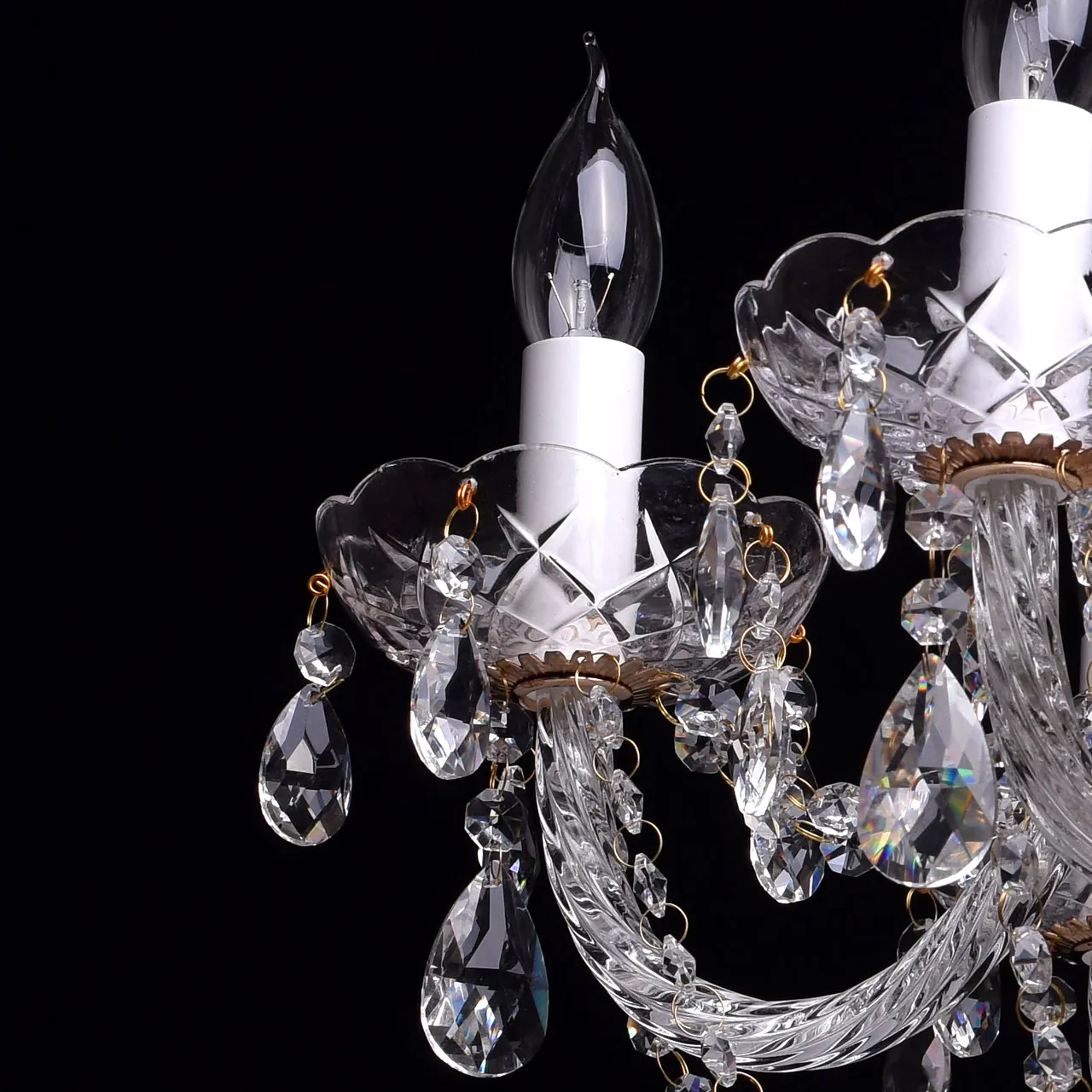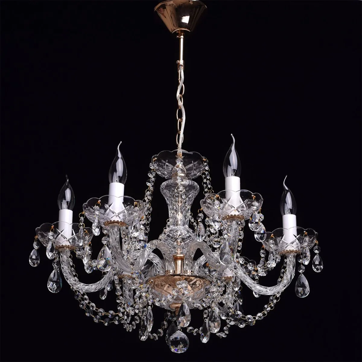 Металлическое основание цвета золота, декоративные элементы из прозрачного хрусталя и стекла с резн