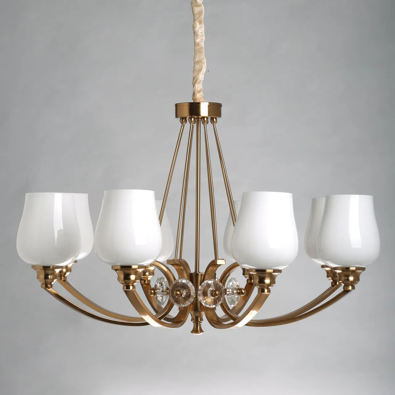 Основание/ сплав алюминия, металл/ латунь Плафоны/ стекло/ белый Декор/ стекло/ прозрачный