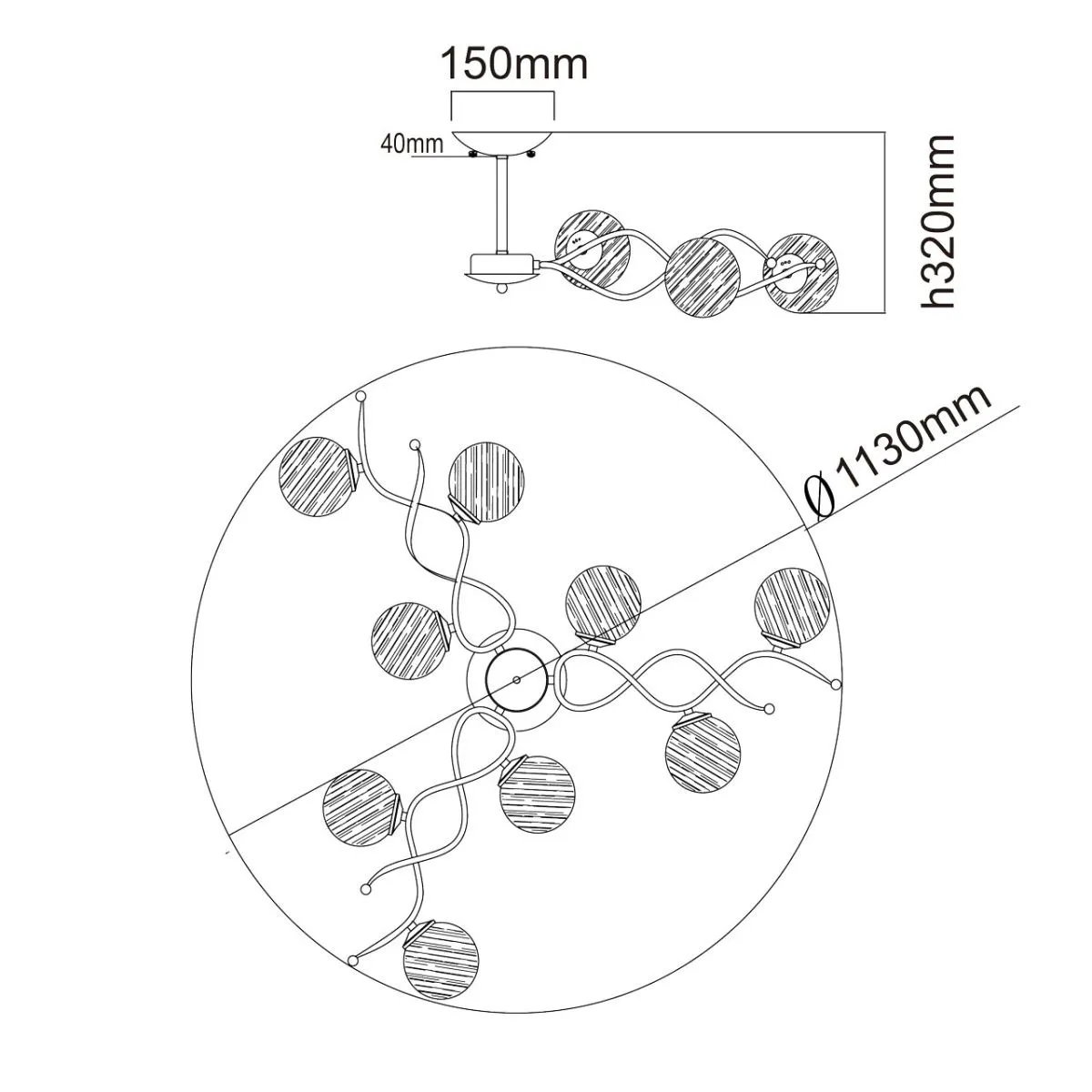 Основание из металла цвета перламутрового золота, Плафон: из матового алебастрового стекла. Декор: