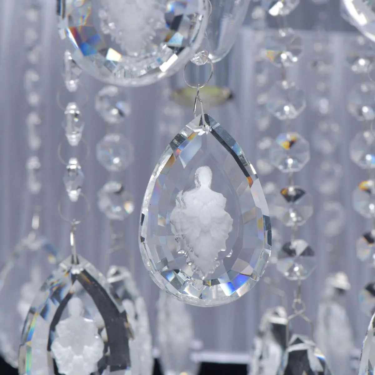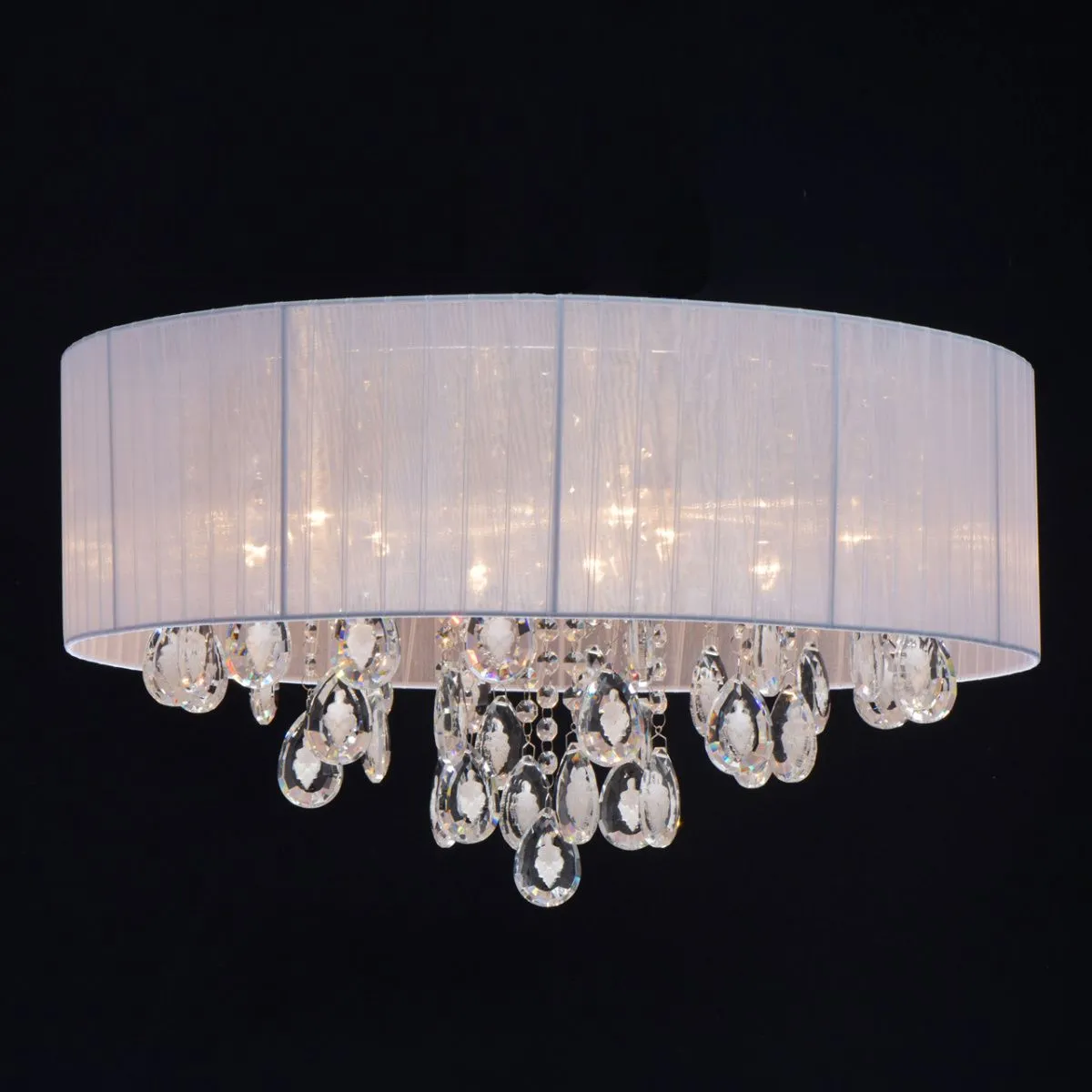 Основание/нержавеющая сталь Плафон/текстиль/белый Декор/хрусталь с резным белым орнаментом