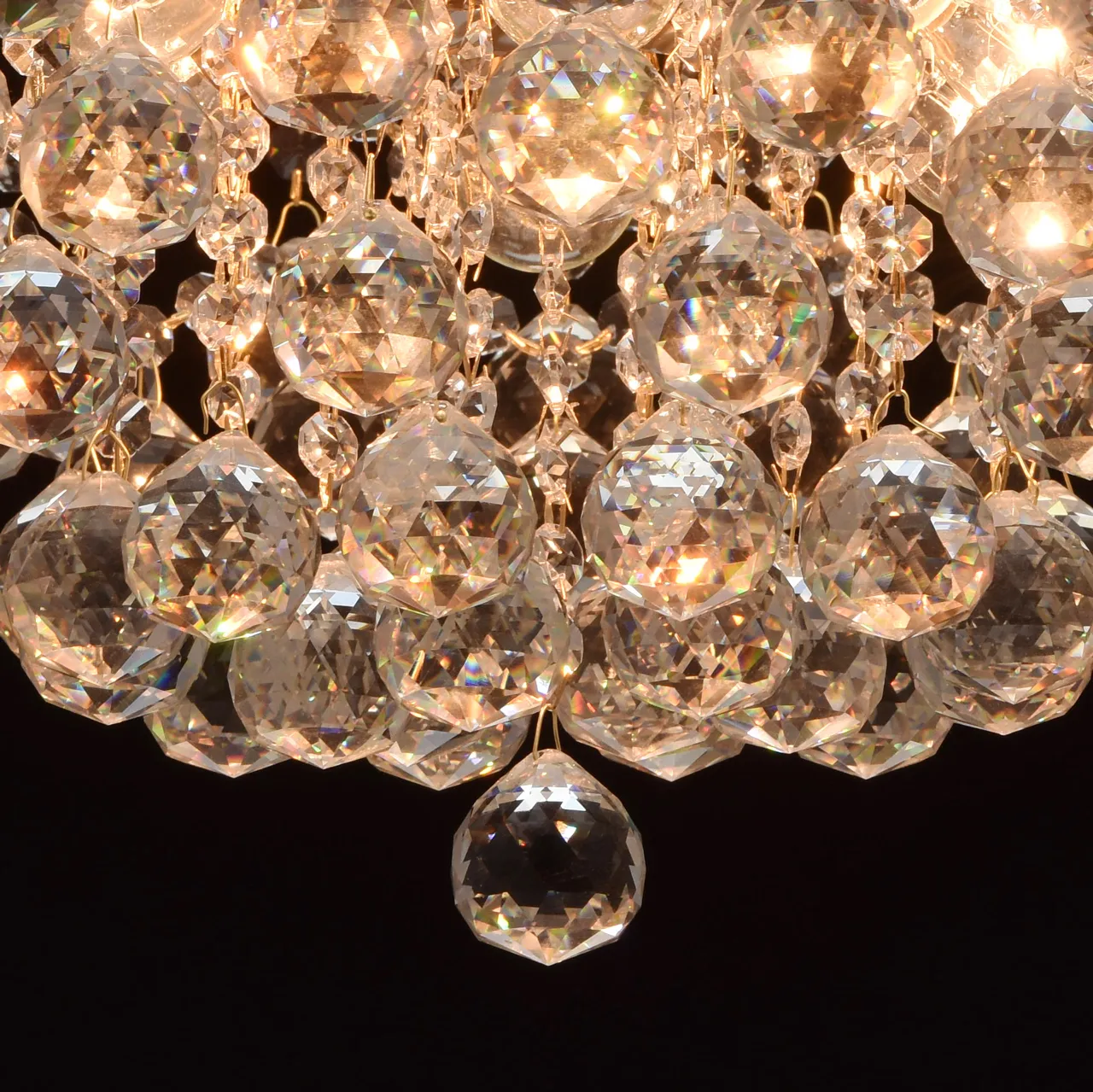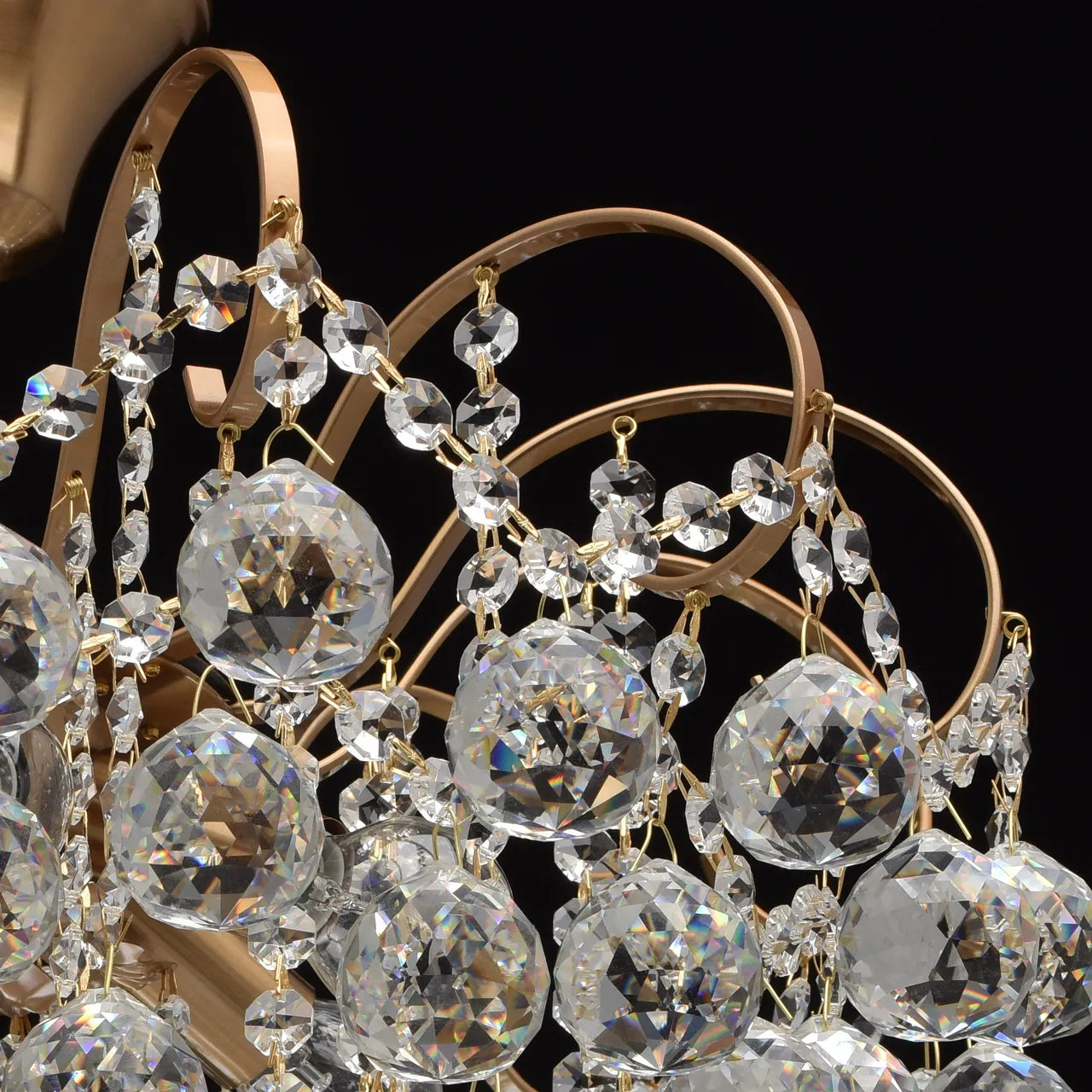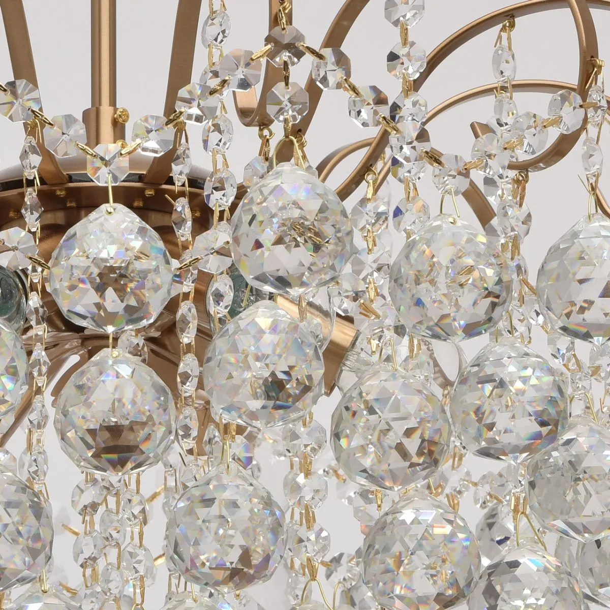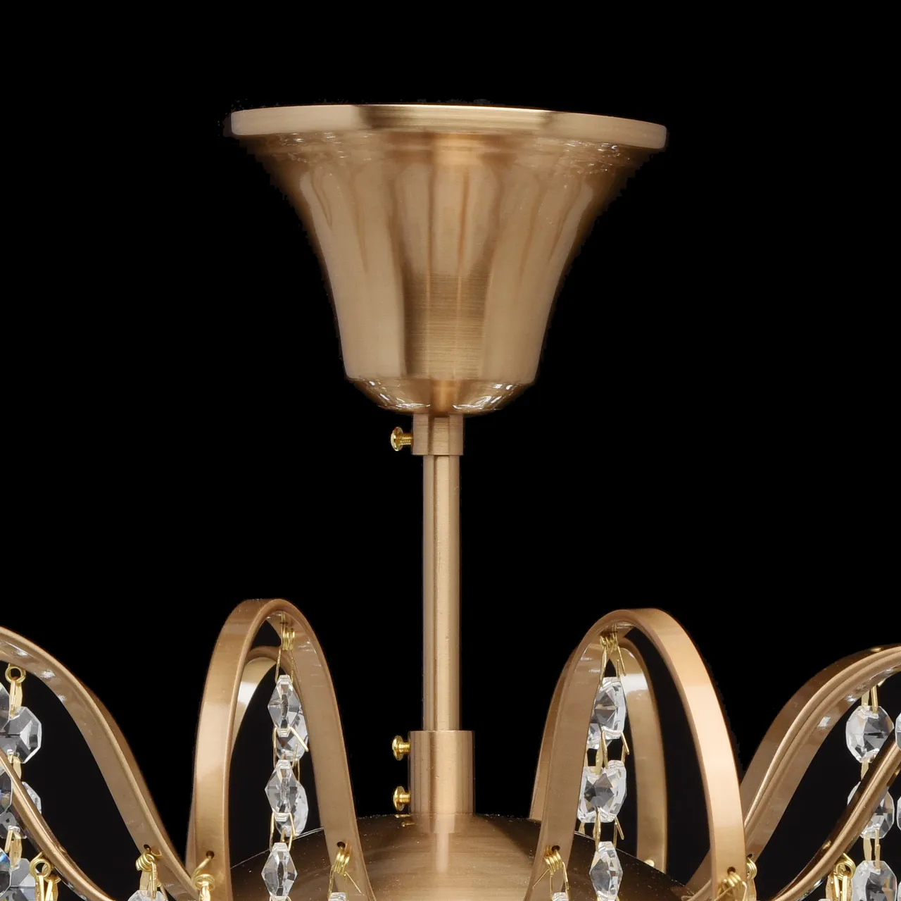 Металлическое основание, цвета медовой бронзы, декоративные подвески из хрусталя.