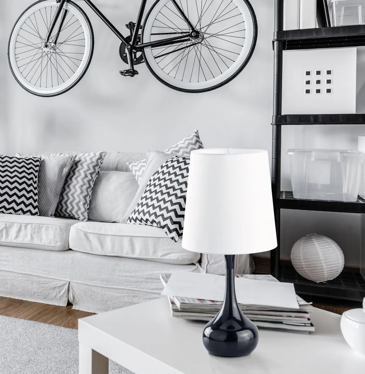 Основание/металл/черный. Абажур/текстиль/белый.