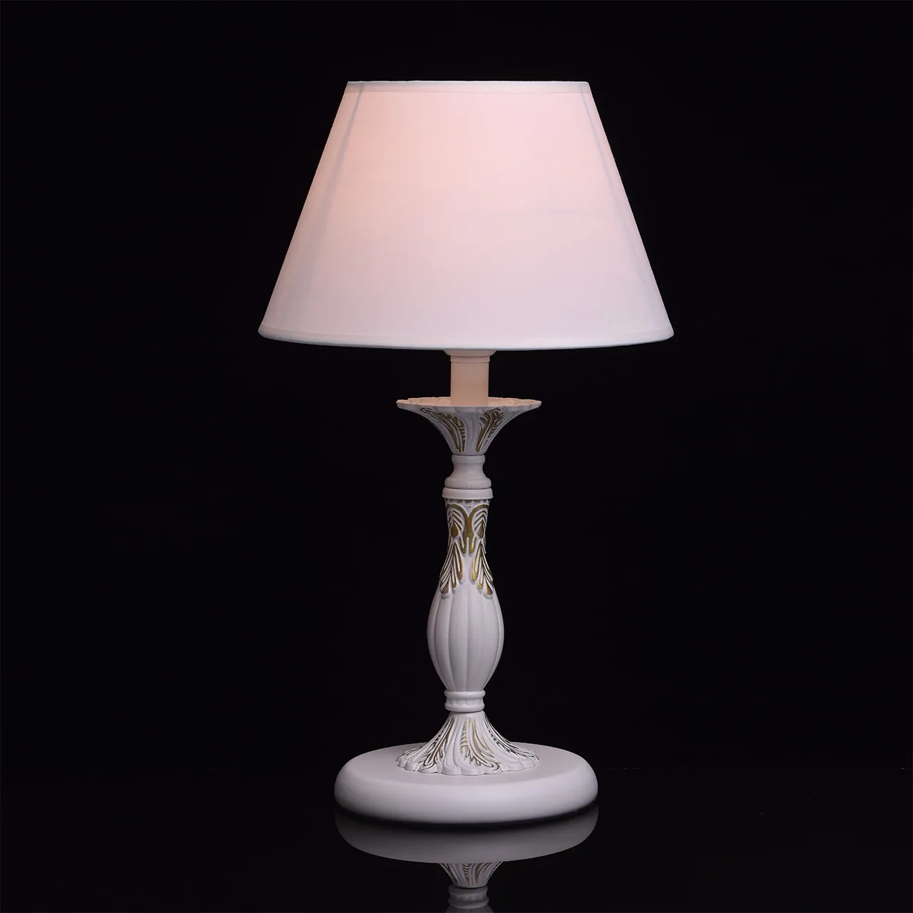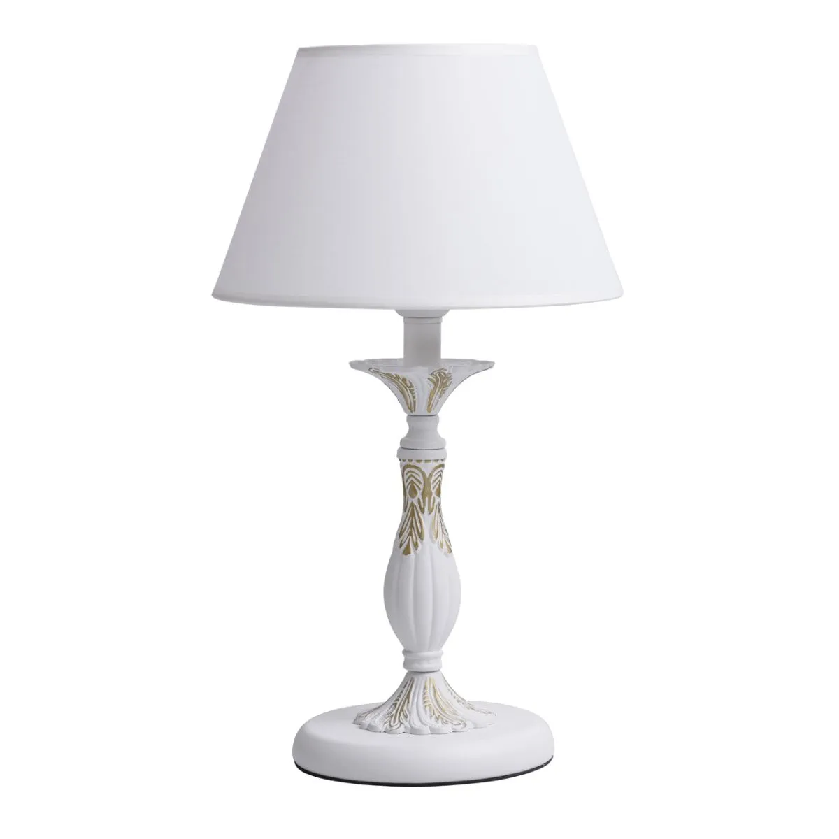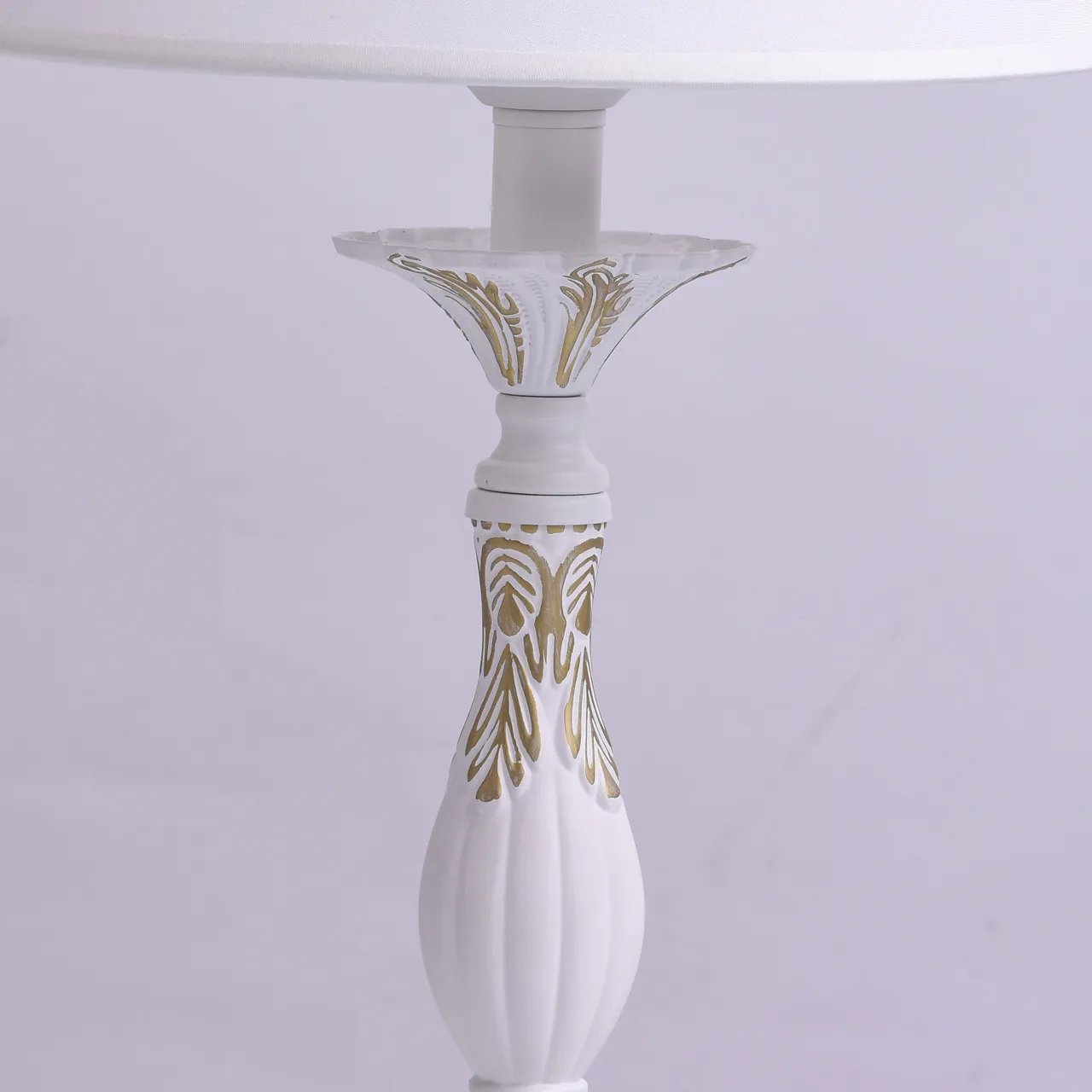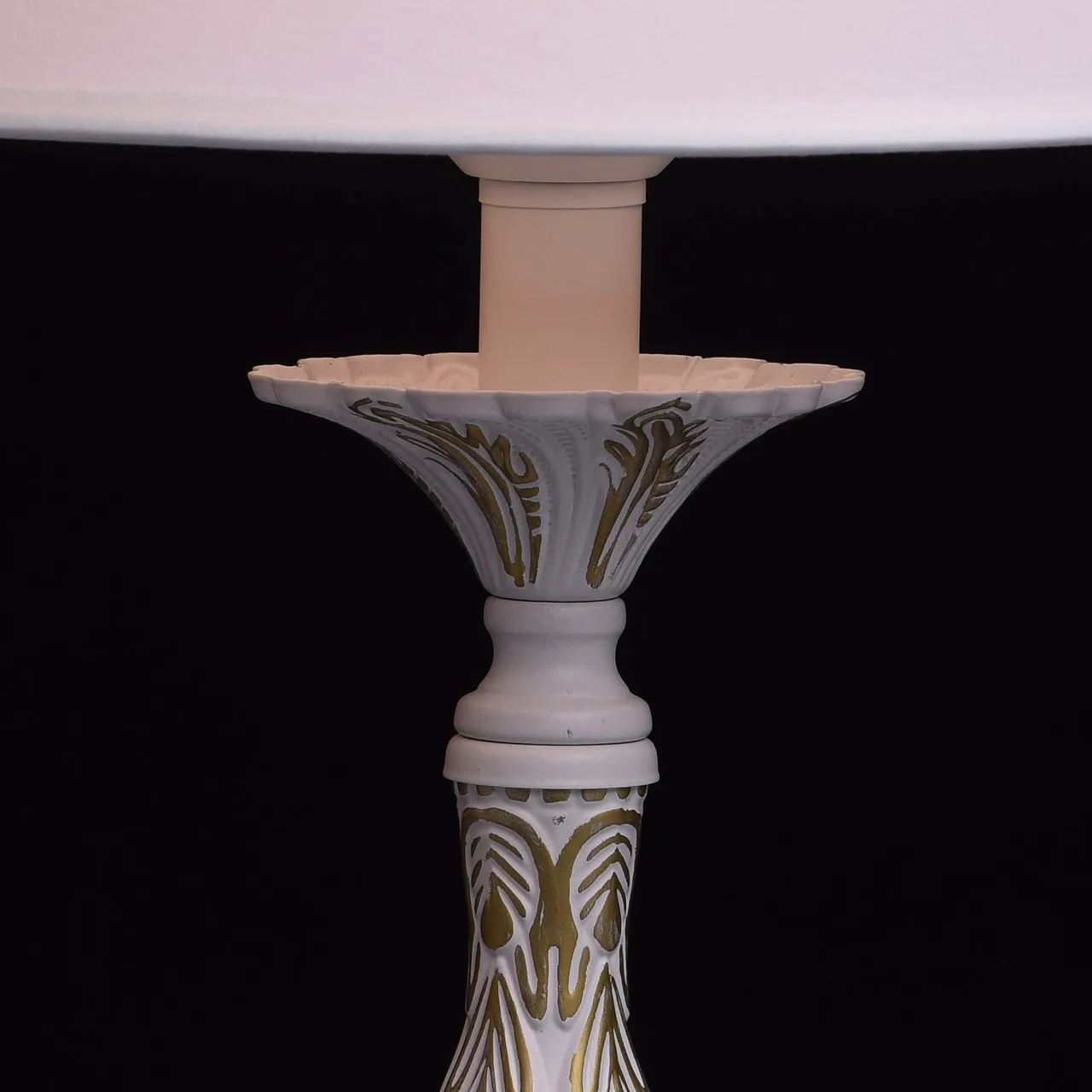 Крашеное металлическое основание в белый матовый цвет с золотой патиной. текстильный абажур
